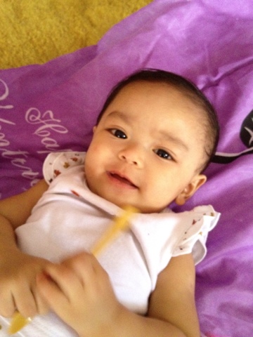 She eats everything!!my mother said she is exactly like me when i was a kid..i ate everything too and that includes needle and coins..last night she almost ate needle!!camne tah die boleh dapat needle..seb baek perasan..