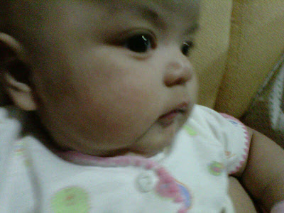 As a mother, what im worried of when my marissa kene vaccinate apart from all the side effects and complications of the vaccine is her pain and discomfort. And im pretty sure im not alone in this case.This article told us that physical intervention alone or physical intervention with sucrose will alleviate the pain or discomfort that baby will endure during the vaccination process. Physical interventions that they used are 5s which are swaddling, shushing, side or stomach position, sucking and swinging. Therefore, parents out there try la gune that 5s masa nak comfortkan baby lepas kene vaccinated..bulan ni banyak sikit aktivity marissa..nak kene g inject pneumococcal and yang ikut malaysia immunisation schedule-diphetria, pertussis, polio and Haemophilus Influenza B. Lepas tu nak g sunatkan die..ari tu actually dh ade tok bidan nak sunatkan die tapi mommy die yang hmm xtau nak describe ni was afraid of sterility and cleanliness of the tok bidan so tak jadi..hehehe...nak g sunatkan die kat klinik when the time permits..susah sikit sebab sume pon bz..ni next week my parents are going to New York so lagi la...